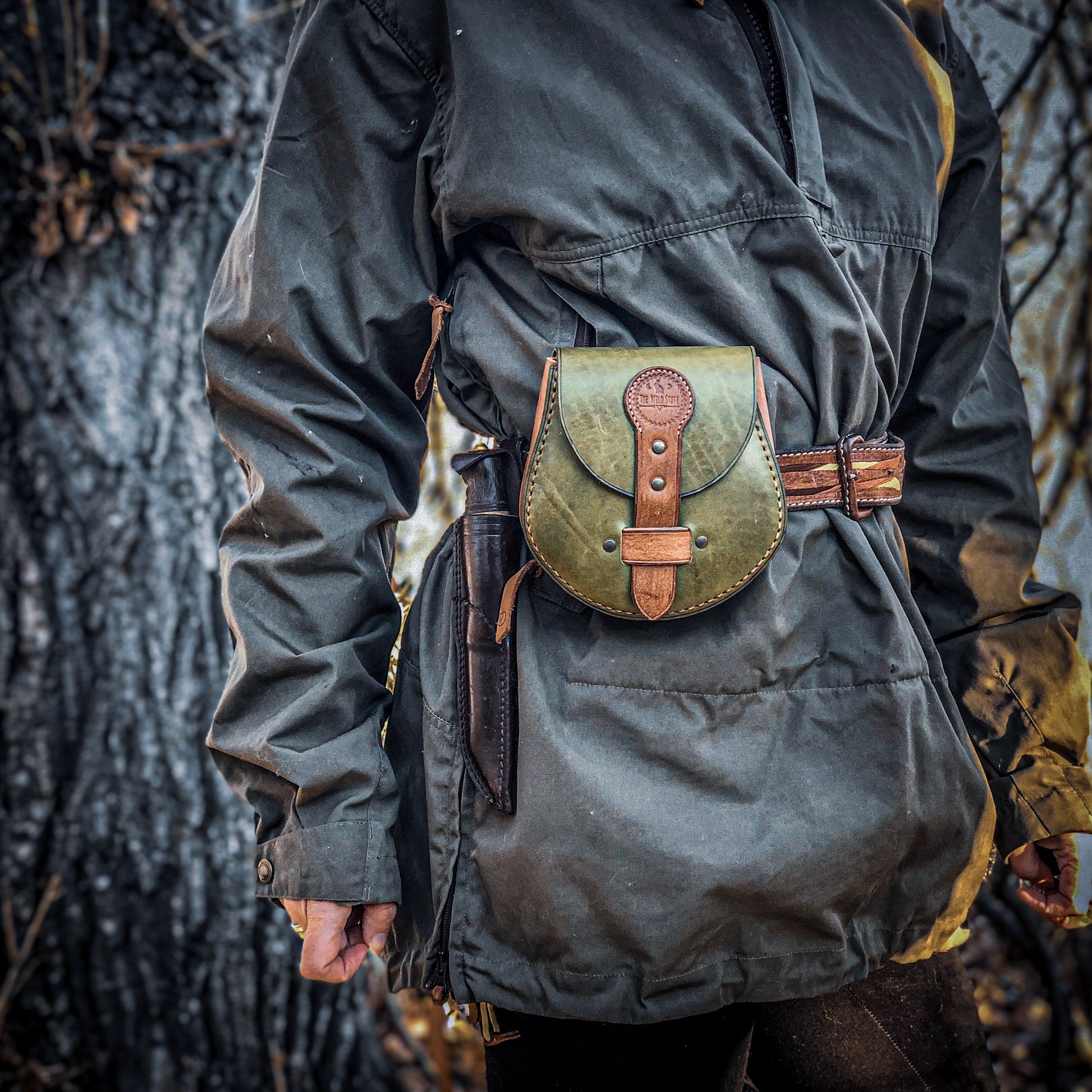 Bush Belt Pouch is back and redesigned for better functionality. It has become a staple to every outdoor adventure. The pouch is hand crafted with genuine leather sourced in Turkey. Made for functionality while holding a traditional esthetic . This pouch is perfect to carry any tinder, fire crafting gear, herbs and berries, medicines, and first aid necessities. Measuring at approx 6" at its widest point and approx 9" tall, and 2" thick . Comes with belt loop.