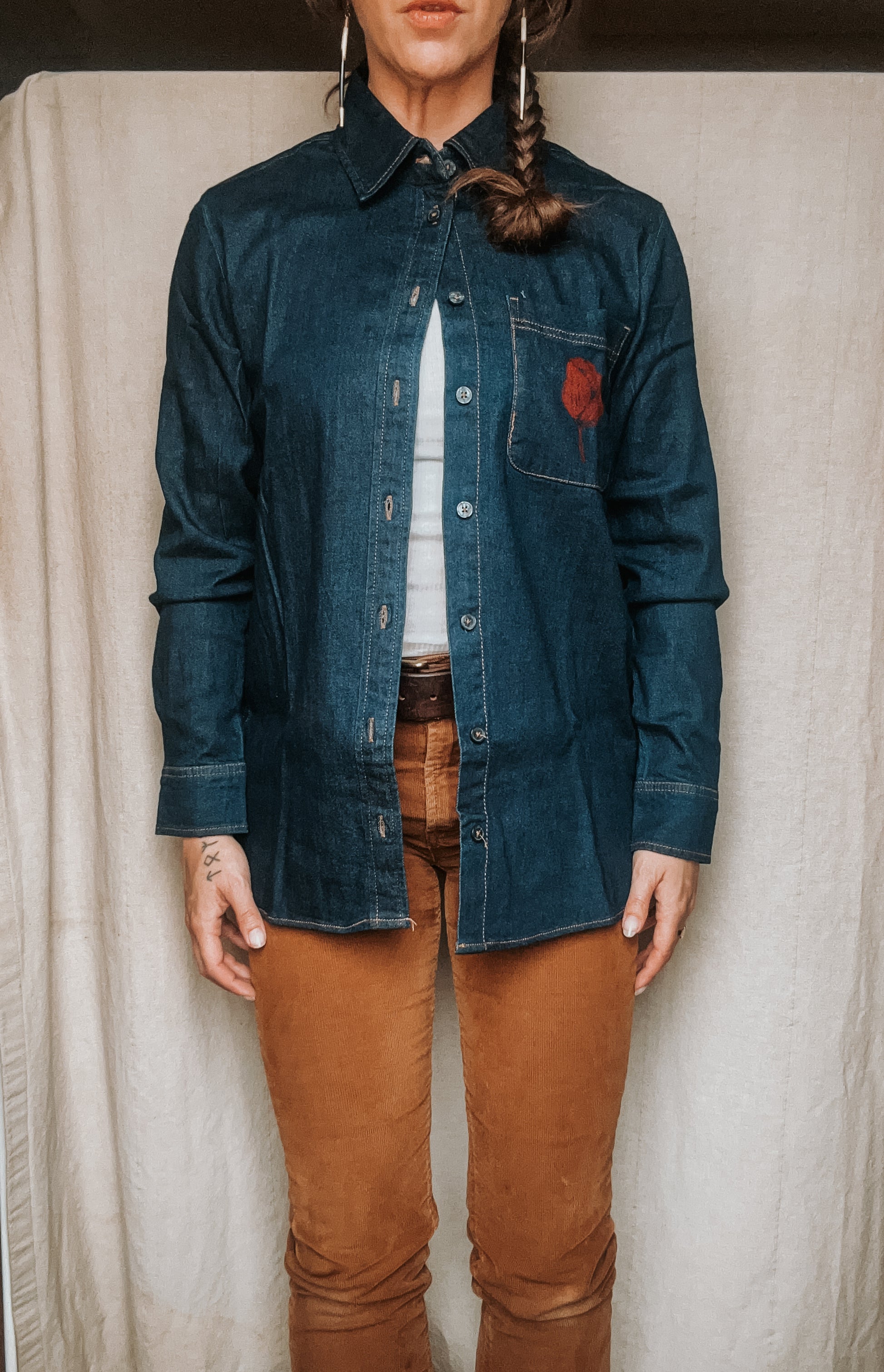 Experience some slick style and versatility with The TULIP Denim Shirt! This button-down, shirt is not your typical denim, each piece is hand printed making it one-of-a-kind and uniquely cool. Stand out, and be bold. <3