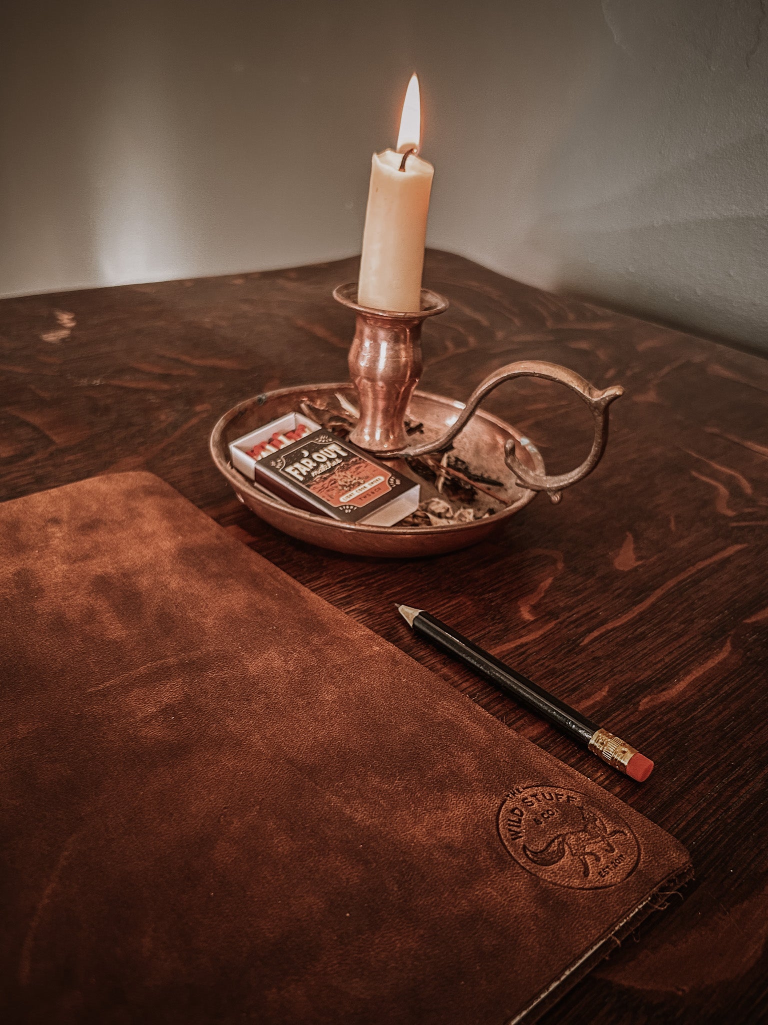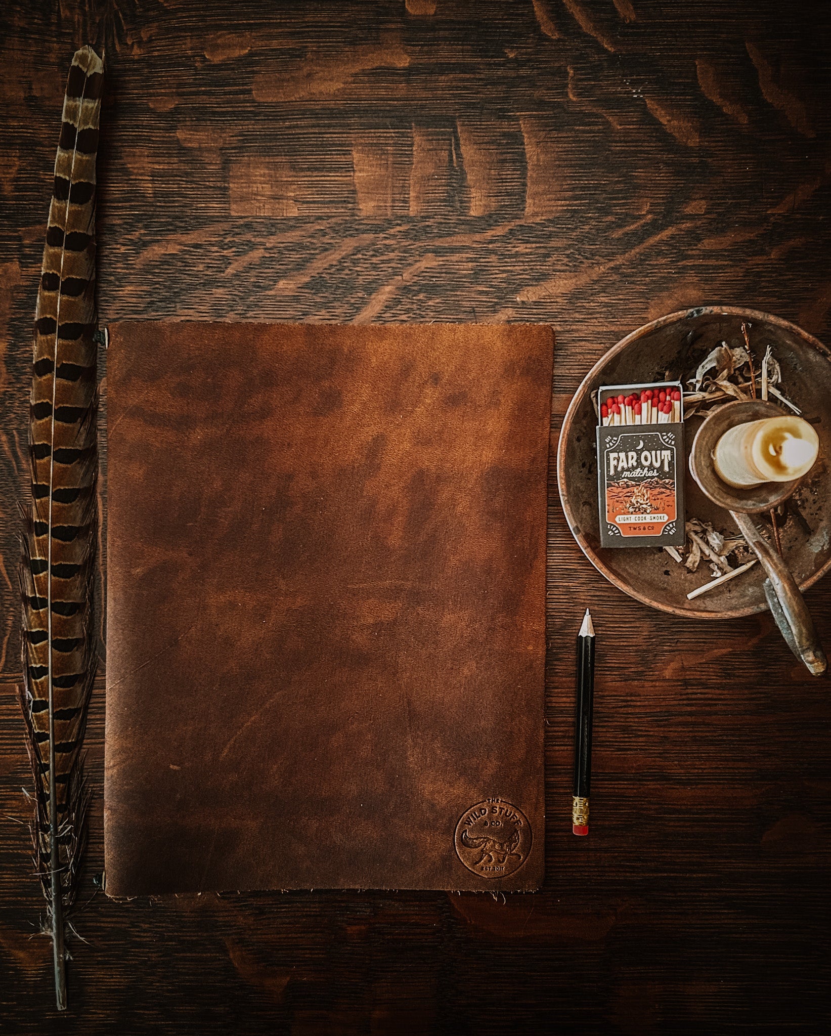 A slim leather cover equipped with our TWS blank notbook. The perfect journal to write your lists, stories, dreams and more.... Accompanied with Brass Washers and olive paracord to secure each notebook.