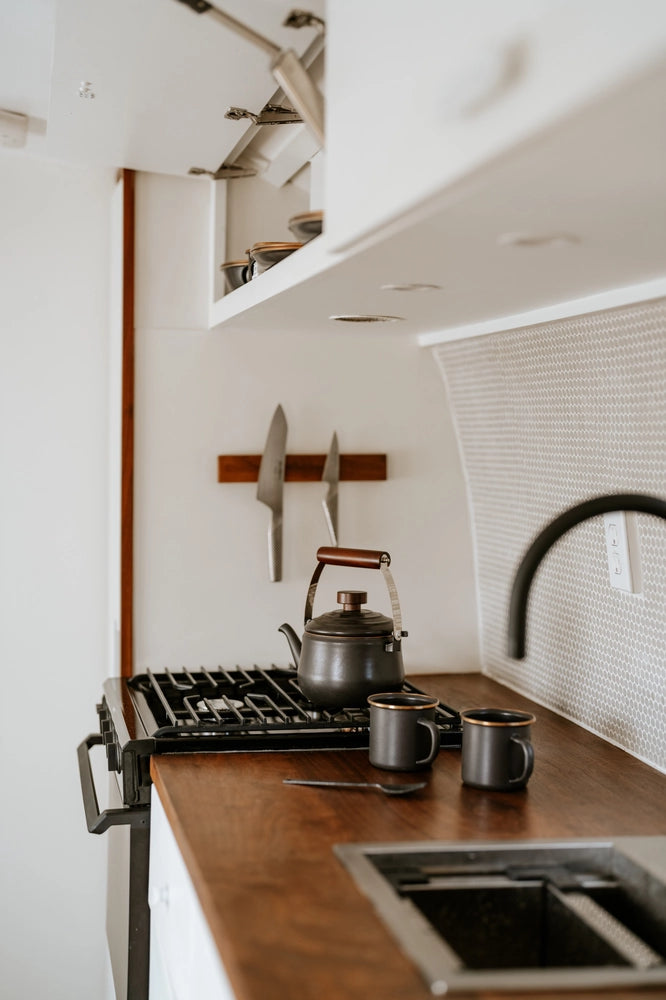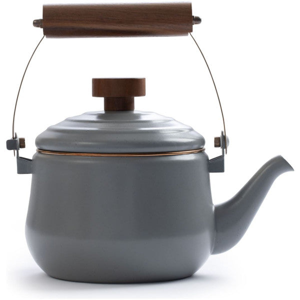 A beautiful statement piece for your camp kit or home kitchen. Ideal for quickly heating water for camp coffee, tea, hot chocolate, and more. The Teapot features a hand-finished, baked stainless steel trim that creates a copper-like patina finish and matches our full enamelware line. Our Enamelware rim is heat treated to create a bronze-like patina finish. Both the surface and rim can be stripped of its unique coloring by acidic foods, such as lemon, and some harsh detergents and cleansers. We recommend hand-washing to help maintain the original look and feel of the pieces.