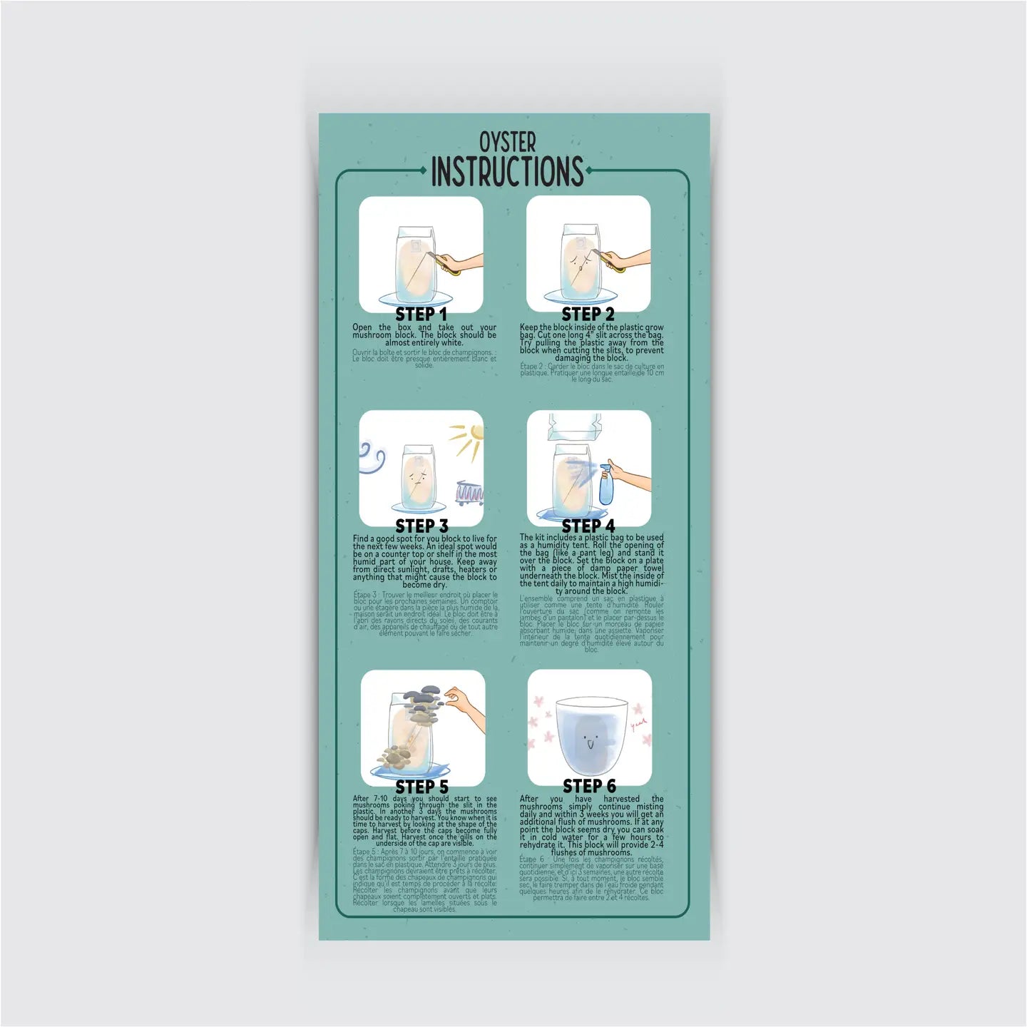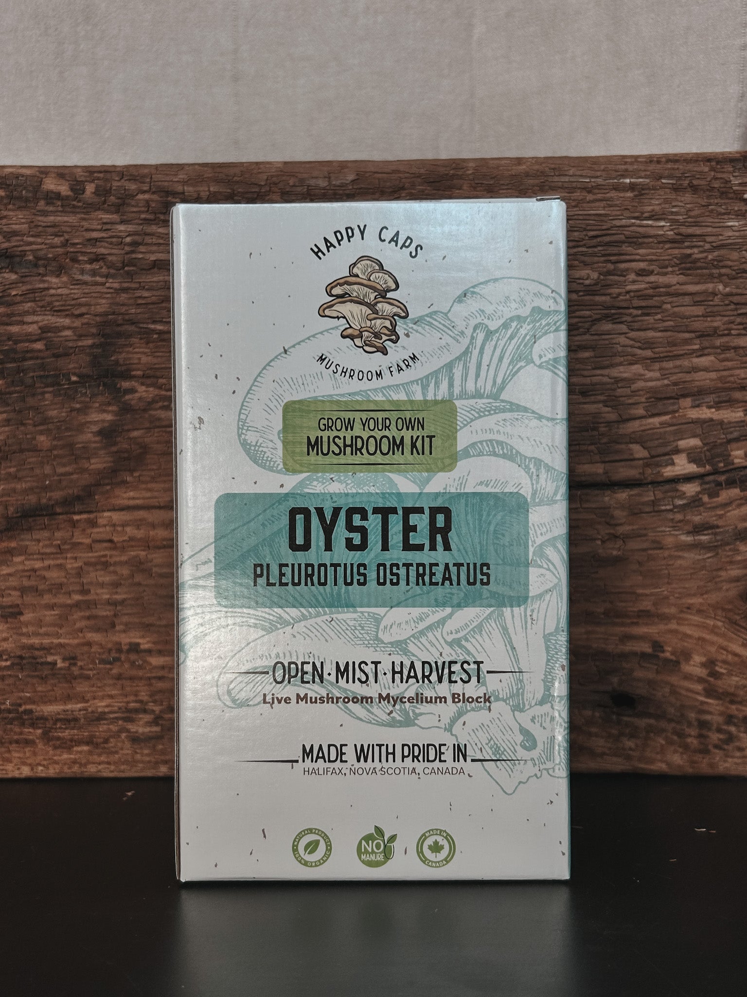 Grow your gourmet mushrooms on your kitchen counter or a shelf in your home! Simply cut a slit in the plastic bag, mist daily, and harvest your fresh gourmet mushrooms within two weeks! This kit contains a block of live oyster mushroom (Pleurotus ostreatus) mycelium. The mycelium is living inside a special filter bag that keeps it healthy and dormant. To activate the block simply give it fresh air by cutting a slit in the bag. The slit is where the mushrooms will grow from. Daily care for the kit includes misting frequently with water and keeping it out of direct sunlight. The kit can give you 2 - 4 harvests of mushrooms. Between harvest simply soak in water for a few hours and let it grow again.