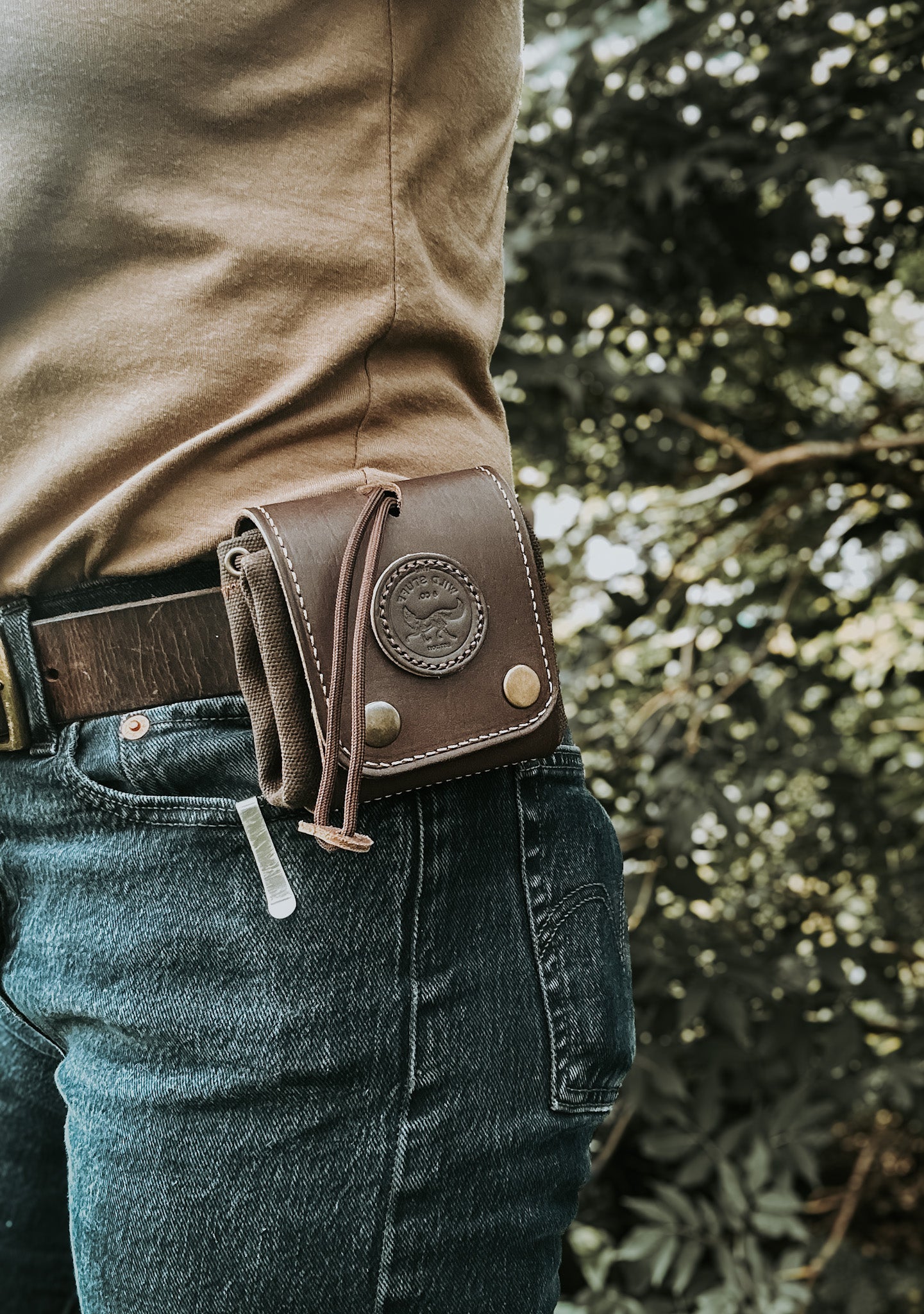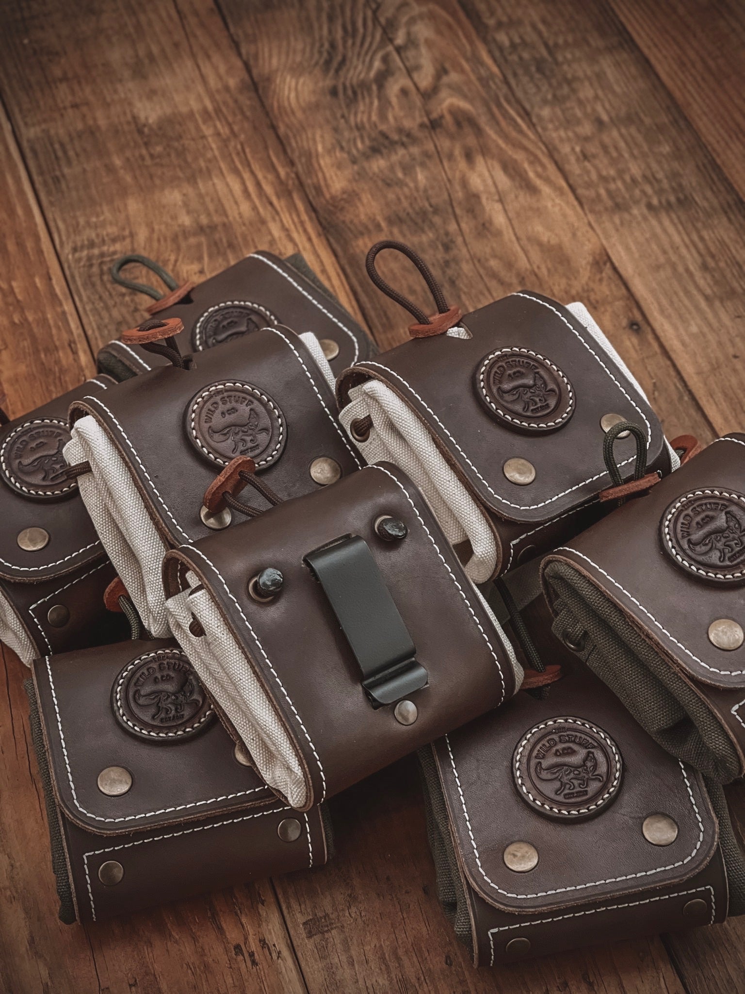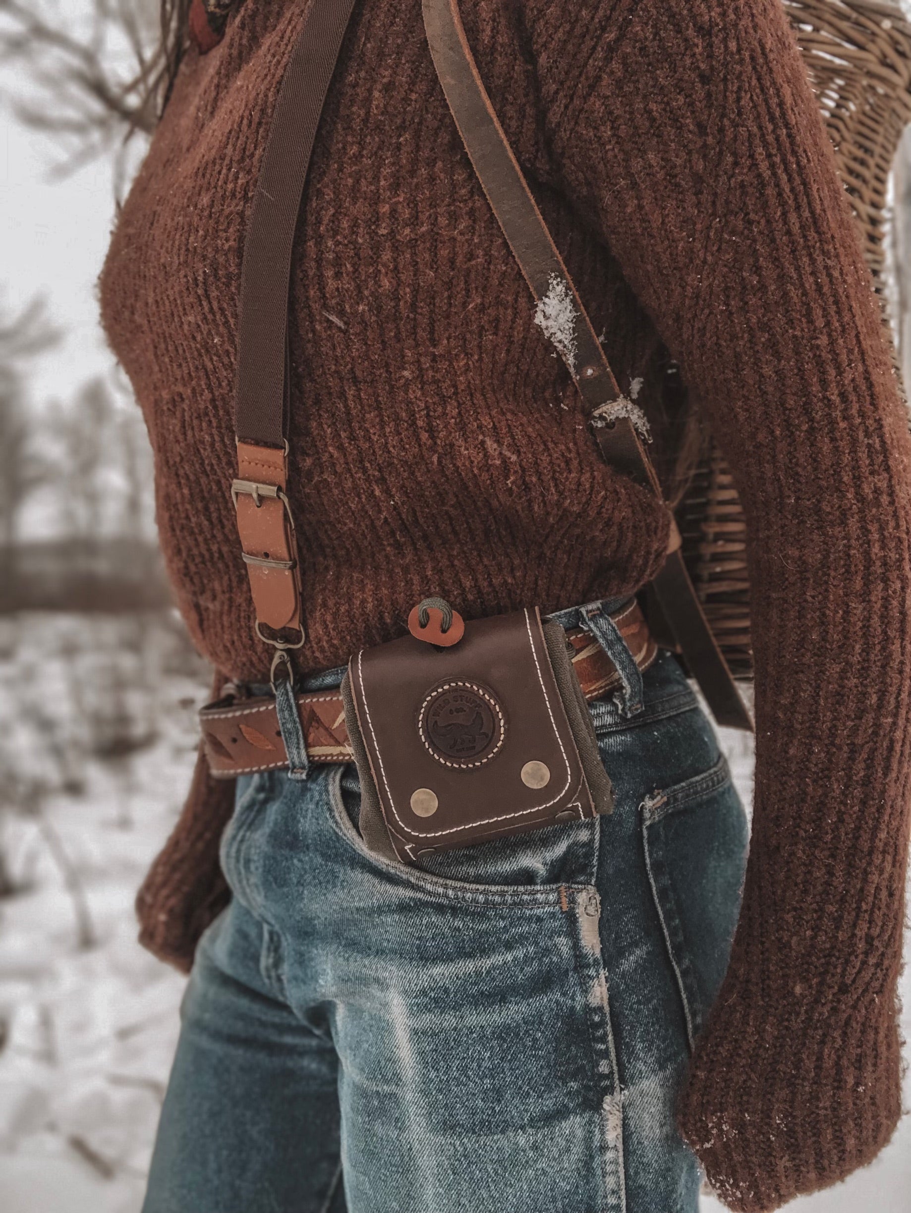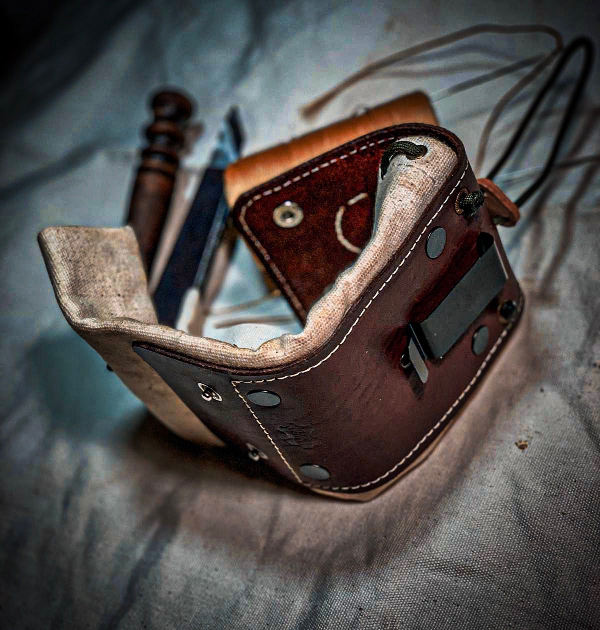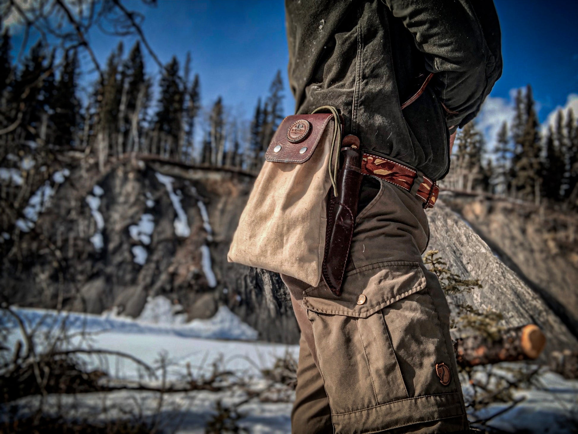 Our canvas and leather foraging tote is a must for any adventure to the sticks. With its highly functional and practical design it helps to keep your wild goods dry, neat, and easily accessible. Made with 100% waxed cotton canvas, its sure to stand up to the wildest excursions. Hand stitched and paneled with genuine leather, its top quality and durability will last a lifetime. Equipped with belt clip to allow for easy wearing and removal while foraging. Cordage drawstring to help close and keep bag secure and tight. Folds neat and tight to wear without bother.