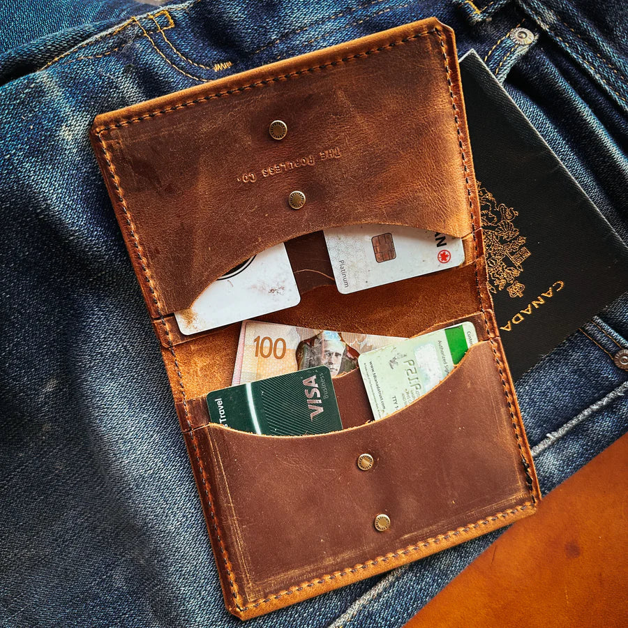 The perfect travel companion. 5.5oz Premium Horween Leather built to last a lifetime. Two card slots for cards and identification. Two slots for Passport(s) and travel itinerary. Note each piece of natural Leather we use has its own characteristics and imperfections colours may vary from hide to hide. Comes with our replaceable Scratch Pad.