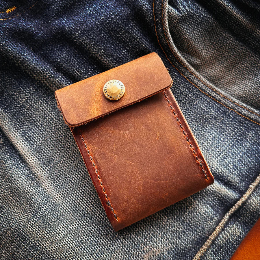 The No. 2 is made from one piece folded 5.5oz SB Foot Leather creating two pockets for cards, accompanied with our Removable TPC Money clip. Holds up to 8 cards.