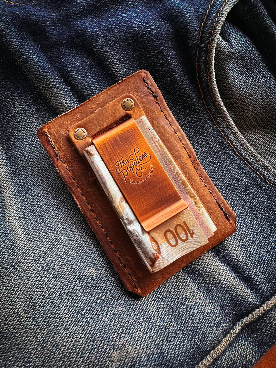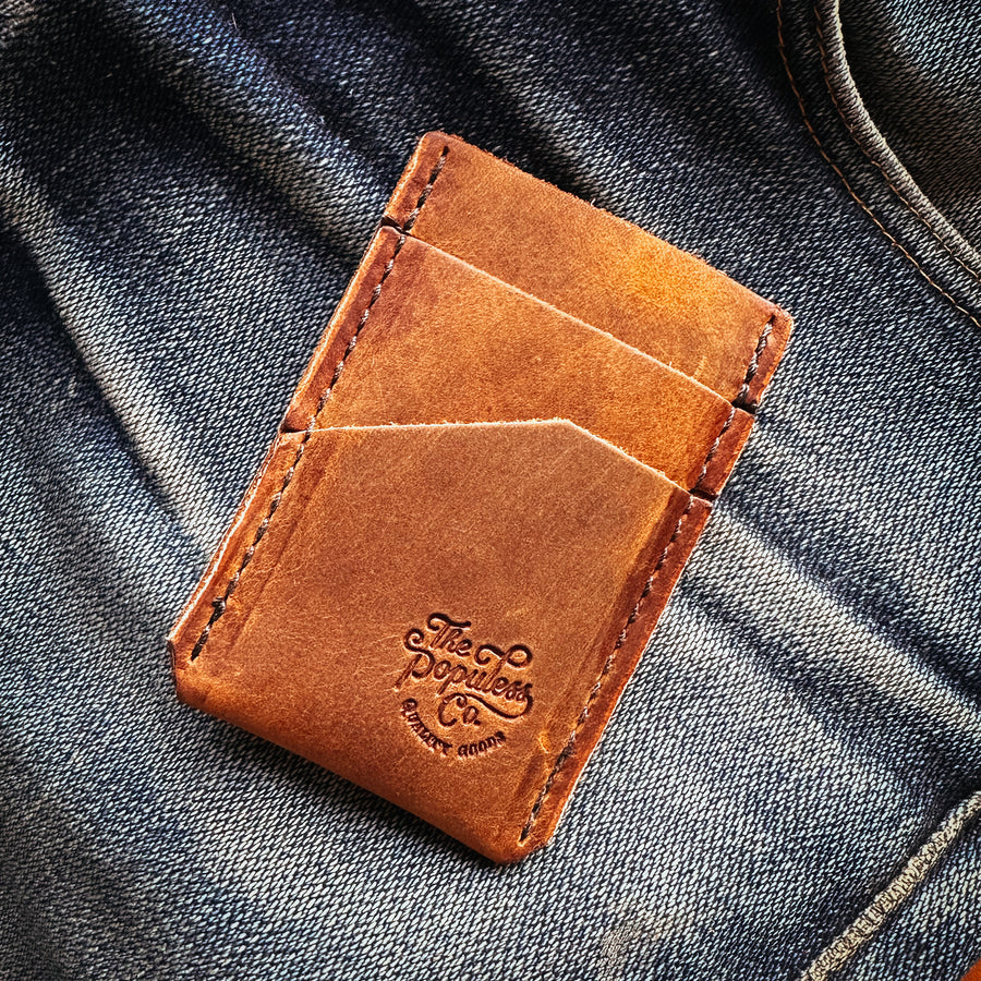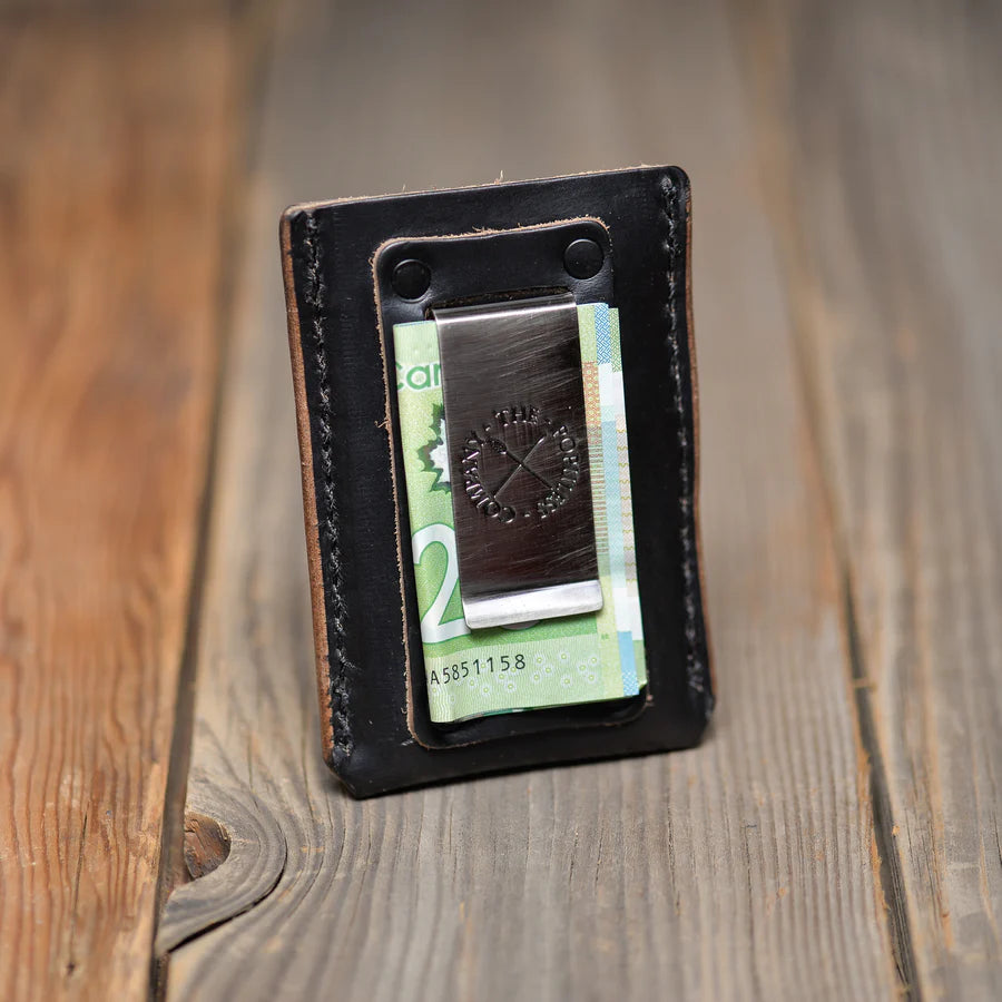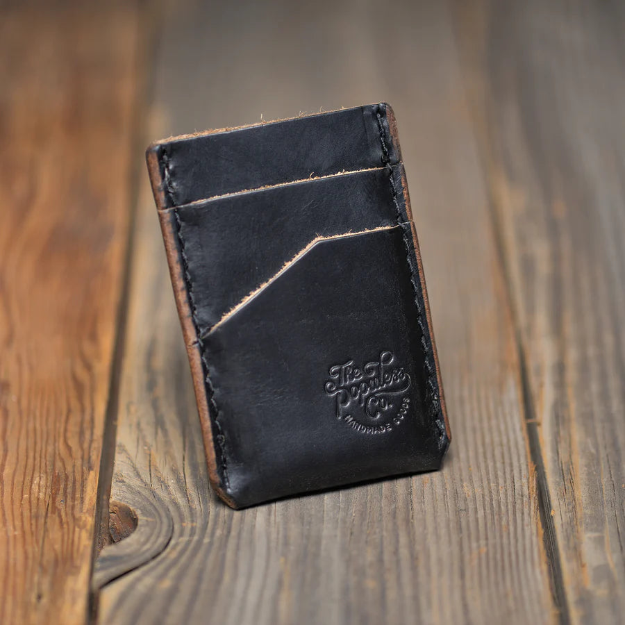 Built from 5.5-6oz Horween Leather. 3 card slots with REMOVABLE TPC Money clip. Holds 9-12 cards after thorough break-in period. The Larson is one of our most popular wallets for its versatility and size.