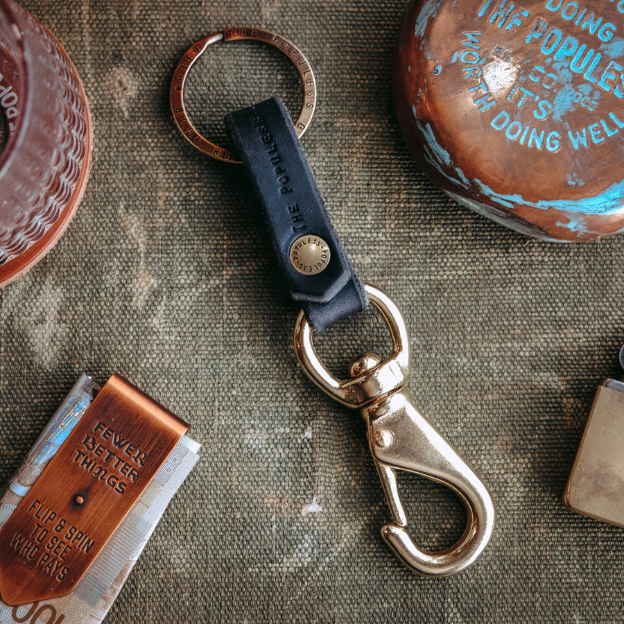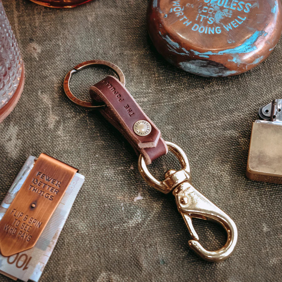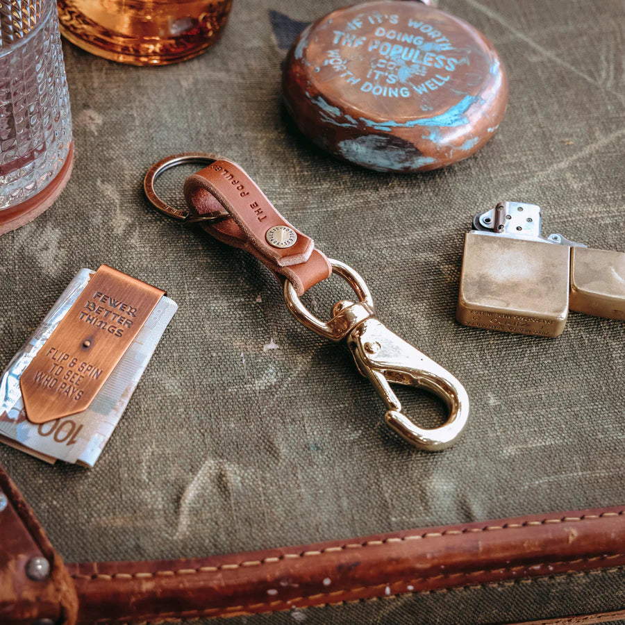 A shorter version of The TPC Fob. Solid Brass hardware. 5 1/2" From Tip to Tail. Constructed of 9/10oz Premium Leather.