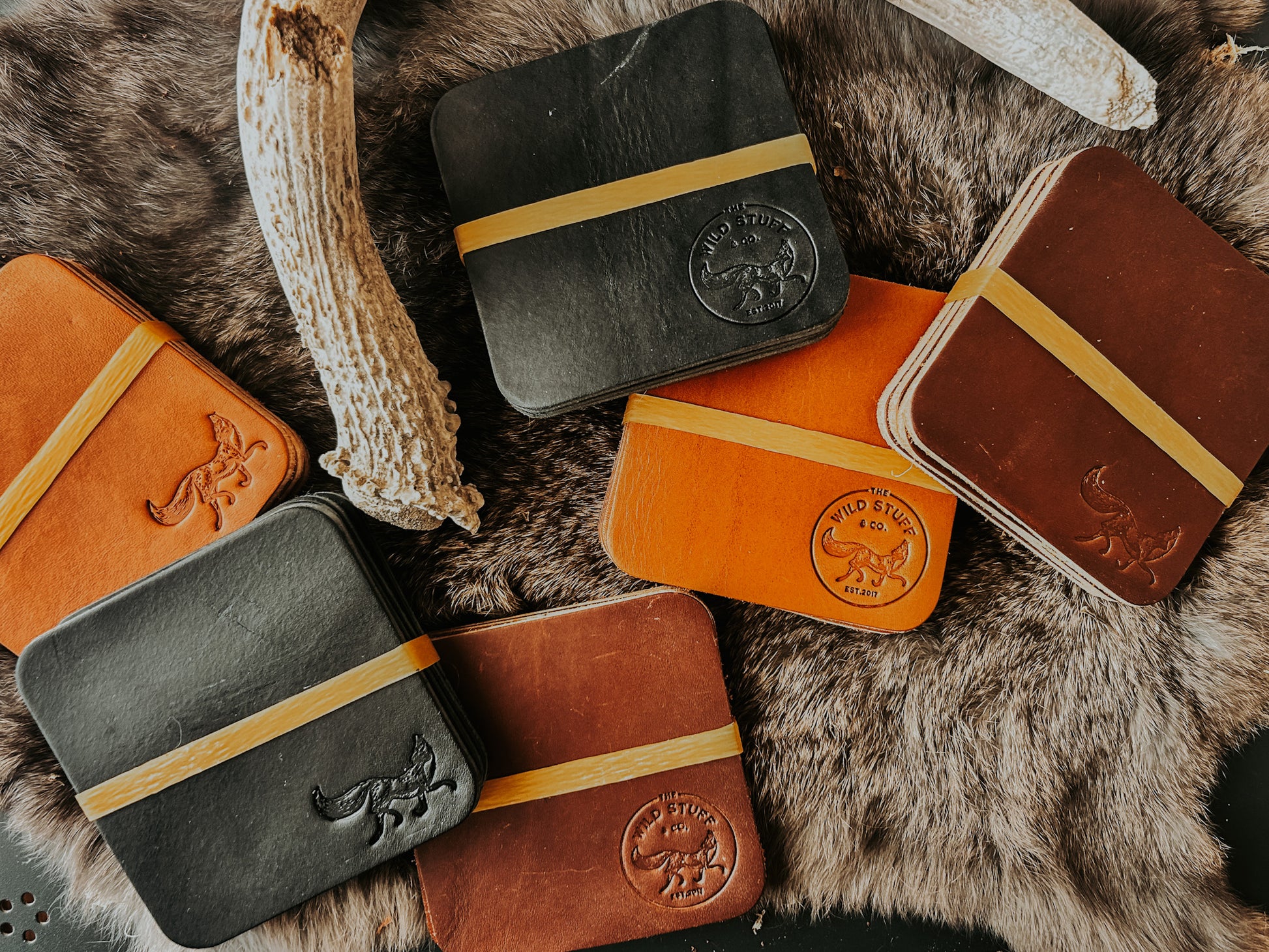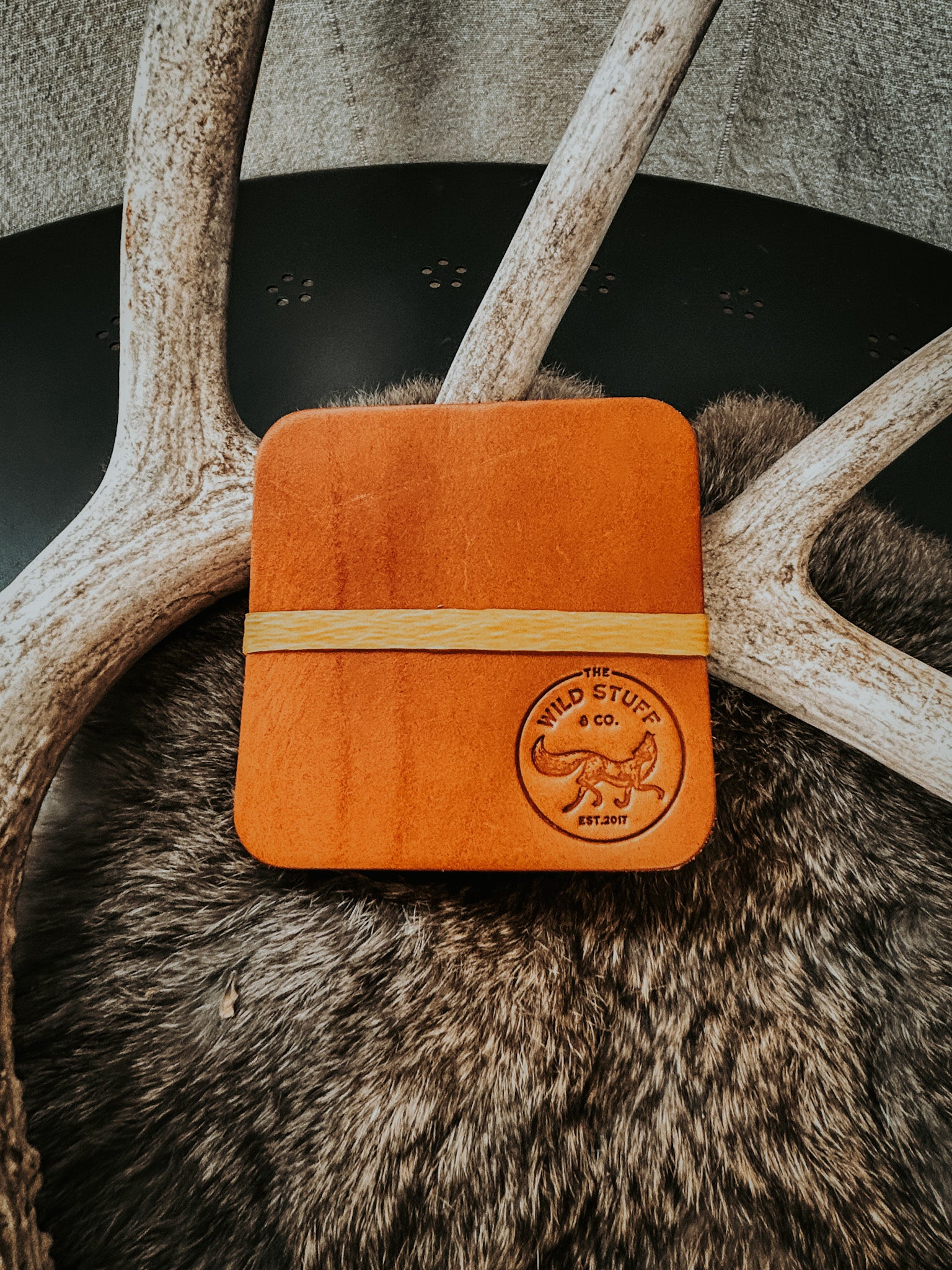 Each coaster is a little canvas waiting to have you paint your moments from a quiet morning coffee to a fine evening with good friends. Consists of 4 (4"x4") square 10-11oz (6-7mm) thick premium leather coasters. Embossed with two TWS logo and two Fox Logos. Note each piece of natural Leather we use has its own unique characteristics and imperfections. Just like the people that surround us, each piece has its own story.