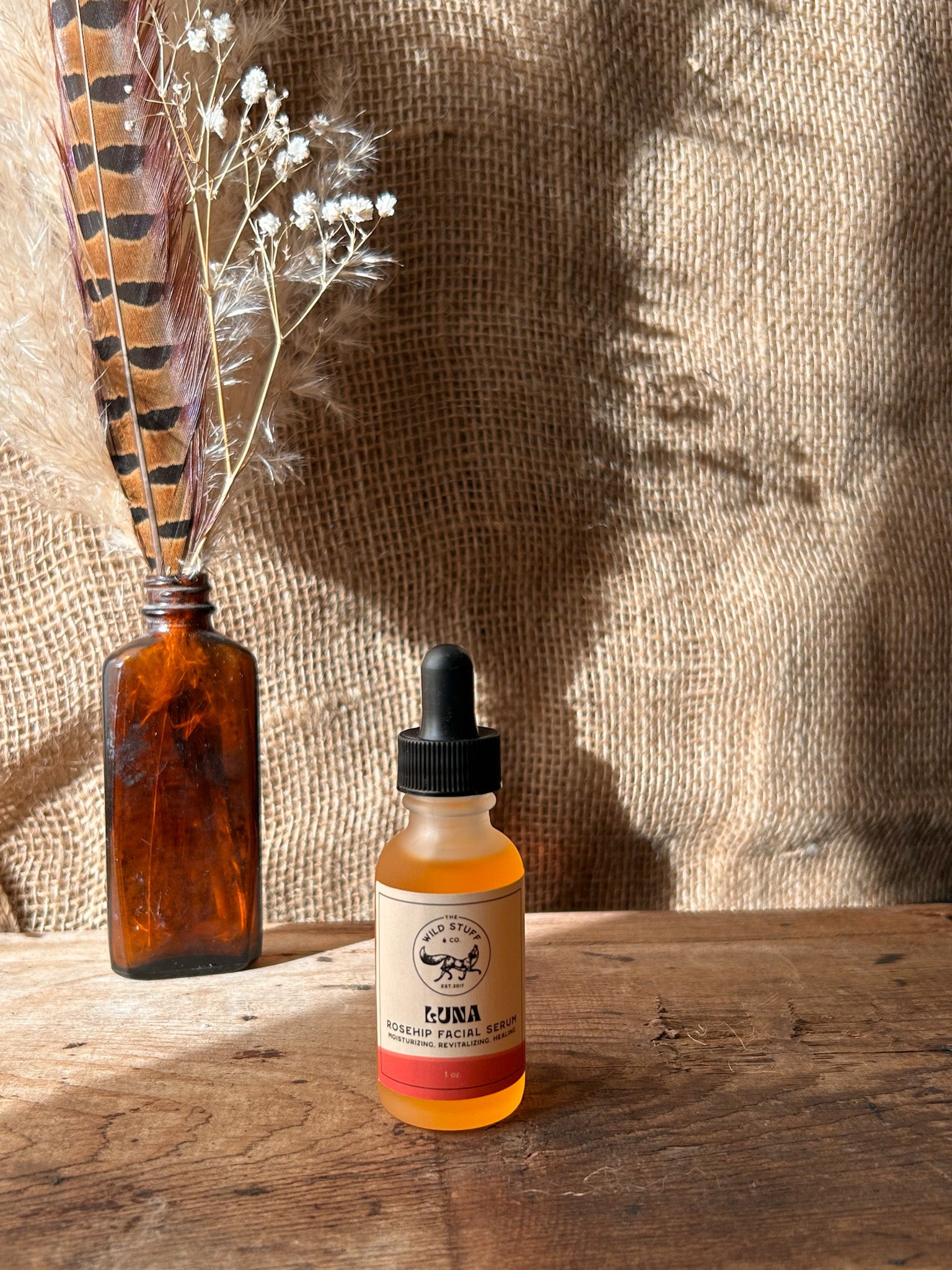 Glow like the moon with our Luna Rosehip facial serum. Rosehip seed oil is one of the leading products in skin care today. This oil is loaded with Vitamin C allowing it to repair connective tissues in the skin. Theses connective tissues when damaged can start to fall or droop, losing its elasticity. Rosehip seed oil helps to treat those tissues and re establish the natural elasticity. Helping with fine lines and age spots as well. Apply when pregnant and throughout pregnancy to help prevent stretch marks. With  a sweet fulfilling aroma this baby is a real gem.